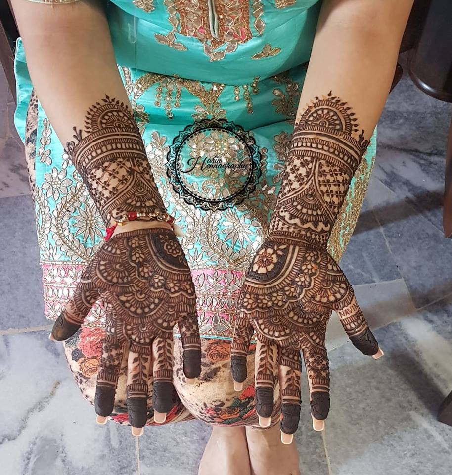 - Time taken for application depends on length of henna and design chosen for both leg and hands.